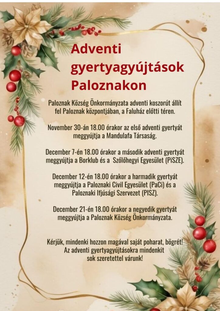 Adventi programok - Paloznak - 2025.11.28.-12.31.