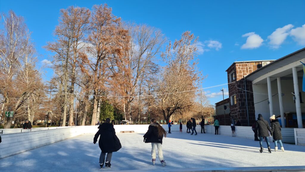 Nemesvámoson a Patak Parkban a Forrás utcában november közepétől egészen 2026 január 15.-éig van lehetőség korcsolyázni az idén is megnyíló műjégpályán.