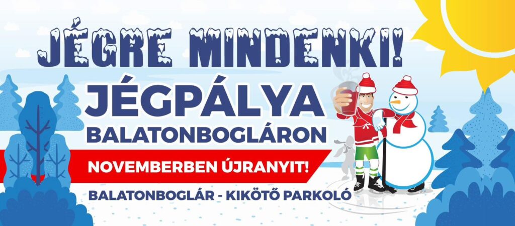 A Balaton legszebb fekvésű jégpályája december 5.-étől vár mindenkit szeretettel Balatonbogláron a BAHART kikötő mellett.