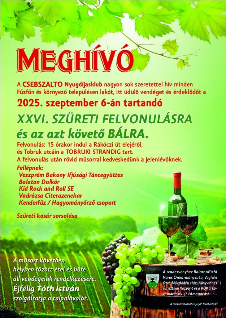 Az eseményről részletes információkat a képen, vagy az alábbi linken találsz: https://balatonfuzfoinfo.hu/program/xxvi-szureti-felvonulas/
